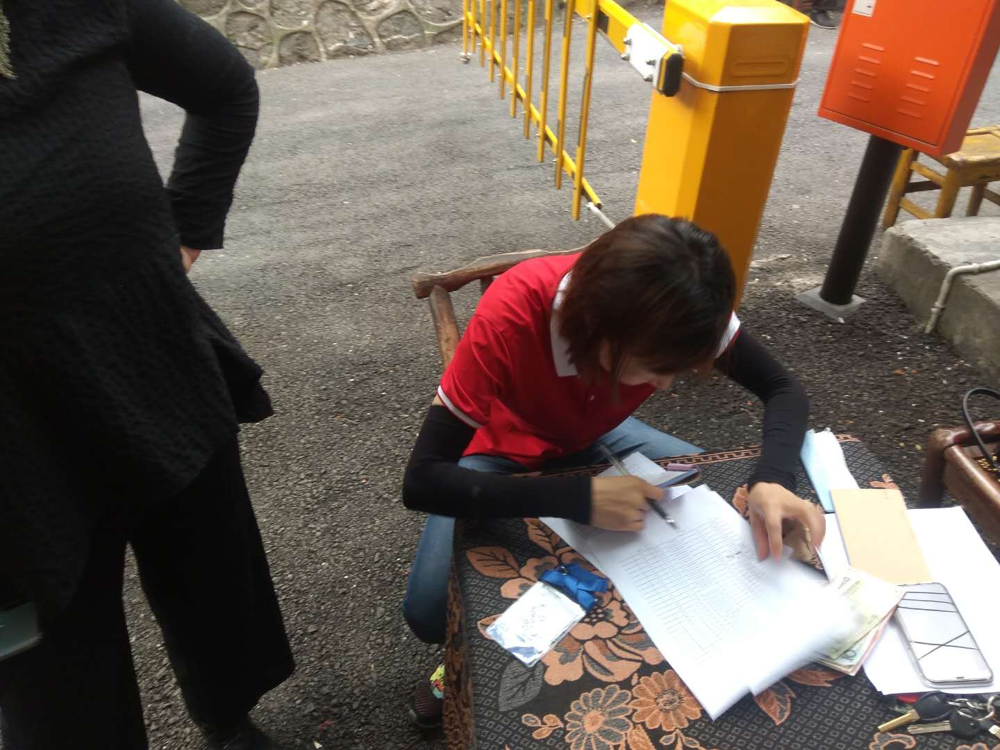 (圖為王雪蓮?fù)驹谀吓_(tái)路2號(hào)收取物業(yè)服務(wù)費(fèi))