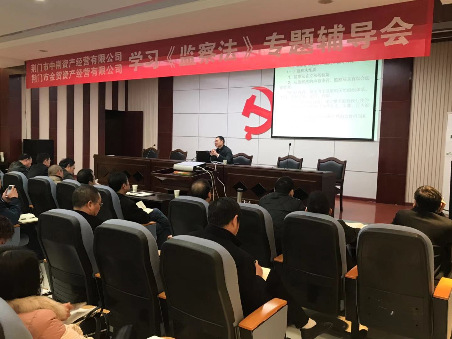 2018年12月5日上午,市中荊資產(chǎn)經(jīng)營有限公司、市金貿(mào)資產(chǎn)經(jīng)營有限公司在五樓會議室聯(lián)合舉辦了《中華人民共和國監(jiān)察法》專題輔導(dǎo)會,中荊投資控股集團有限公司領(lǐng)導(dǎo)及系統(tǒng)內(nèi)全體員工參加了輔導(dǎo)。會議由公司副總經(jīng)理梁世希同志主持,邀請了荊門黨校法學(xué)教授吳衛(wèi)東授課。